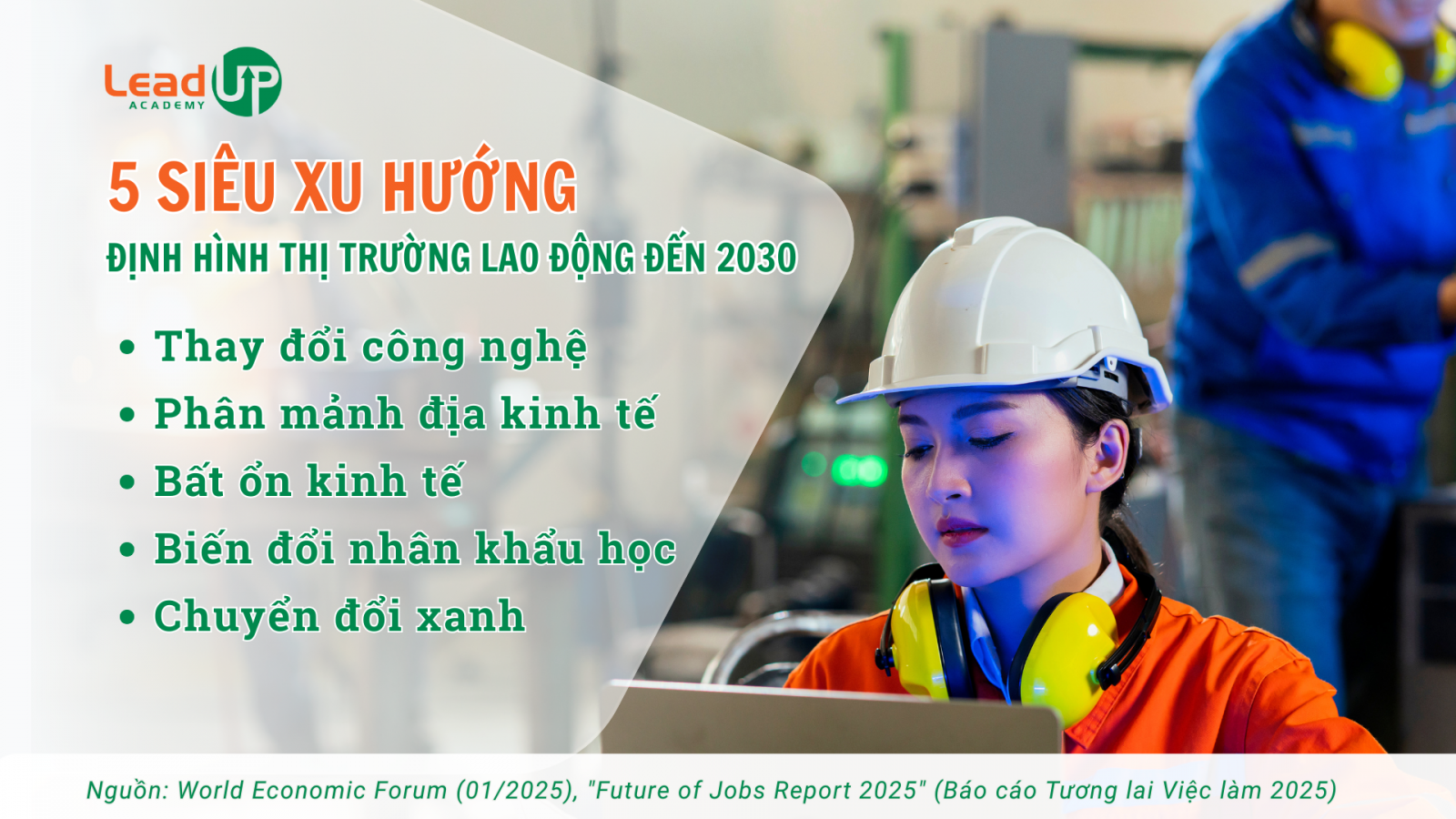 Trong thập kỷ tới, thị trường lao động toàn cầu được dự báo sẽ trải qua một giai đoạn biến đổi mạnh mẽ, chịu tác động đồng thời từ nhiều yếu tố vĩ mô như: sự tiến bộ của công nghệ, phân mảnh địa kinh tế, bất ổn kinh tế, thay đổi nhân khẩu học và quá trình chuyển đổi xanh. Động lực thúc đẩy từ những xu hướng này đang hằng ngày tái định hình cấu trúc việc làm, kỹ năng và cách thức tổ chức công việc trong các doanh nghiệp.