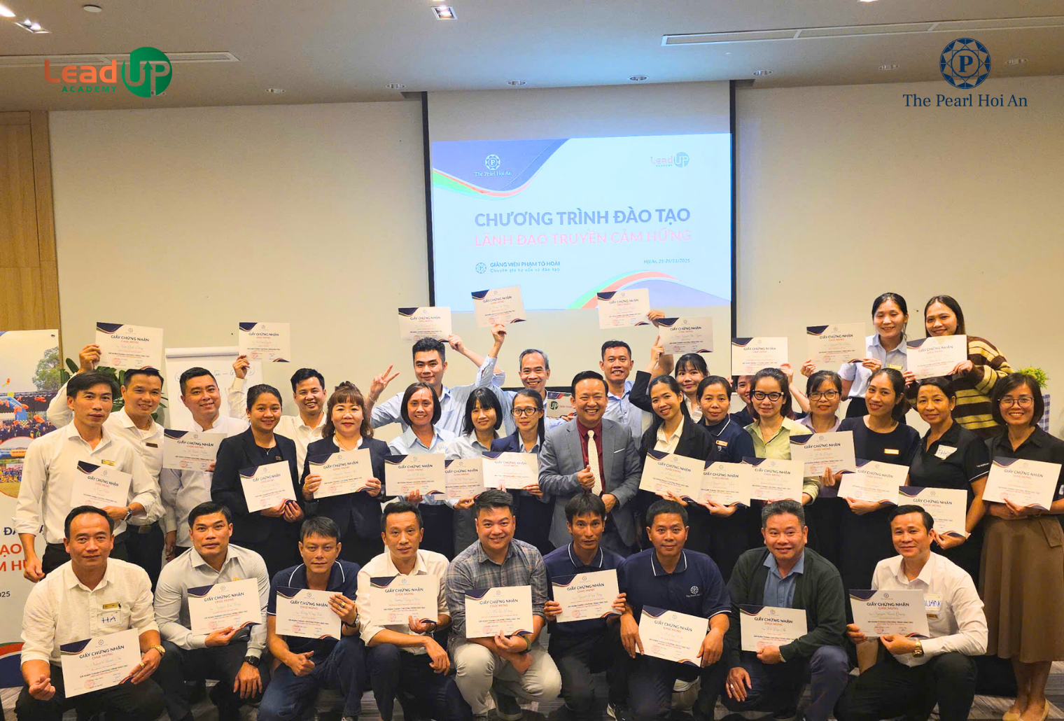 Ngày 25/11/2025, tại Khách sạn The Pearl Hội An, Lead-UP Academy chính thức khai giảng chương trình đào tạo “Lãnh đạo truyền cảm hứng” dành cho đội ngũ quản lý và lãnh đạo của khách sạn. Đây là chương trình được thiết kế riêng biệt nhằm nâng cao tư duy quản trị, bản lĩnh lãnh đạo và khả năng tạo ảnh hưởng tích cực trong môi trường dịch vụ – lưu trú cao cấp.
