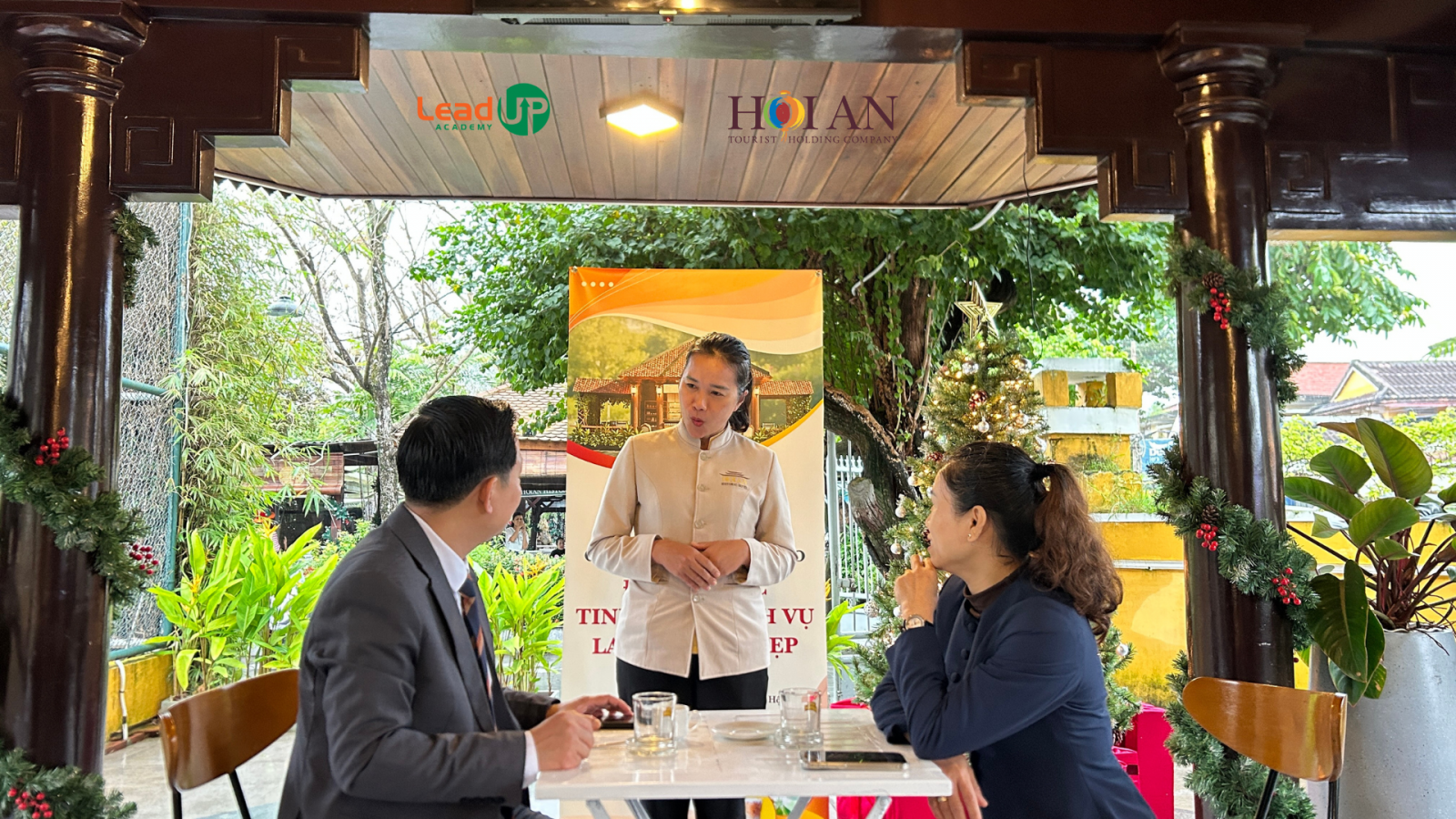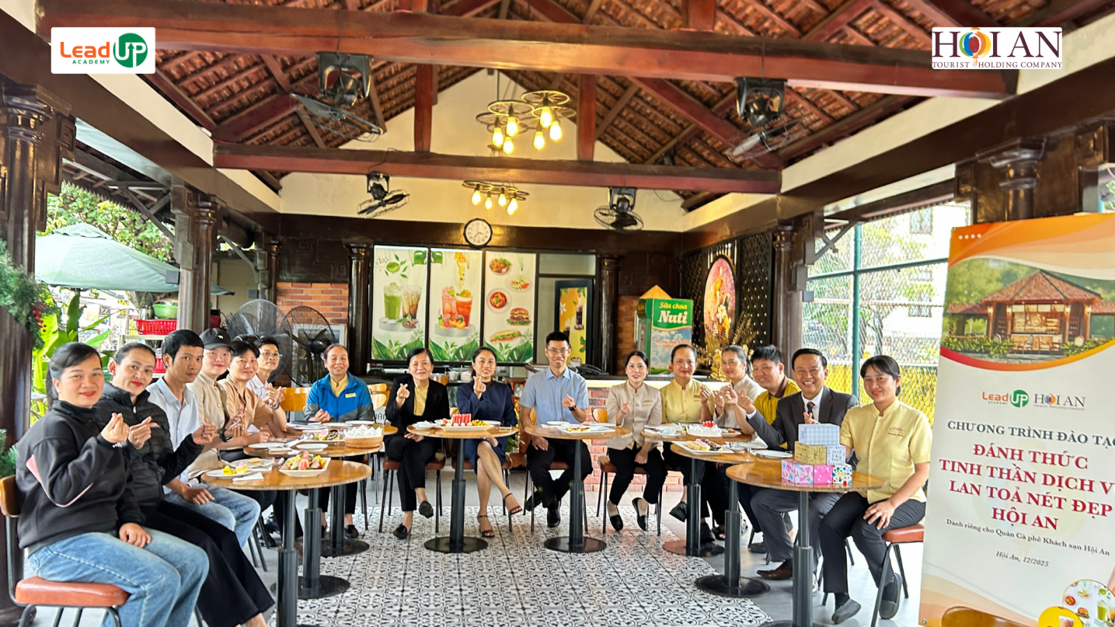 Ngày 20/12/2025, Lead-UP Academy phối hợp cùng Công ty Cổ phần Du lịch – Dịch vụ Hội An đã chính thức khai mạc chương trình đào tạo “Đánh thức tinh thần dịch vụ – Lan tỏa nét đẹp Hội An”, dành cho đội ngũ cán bộ nhân viên Quán Cà phê Khách sạn Hội An, dưới sự chứng kiến của Ban Lãnh đạo và đại diện các đơn vị liên quan.