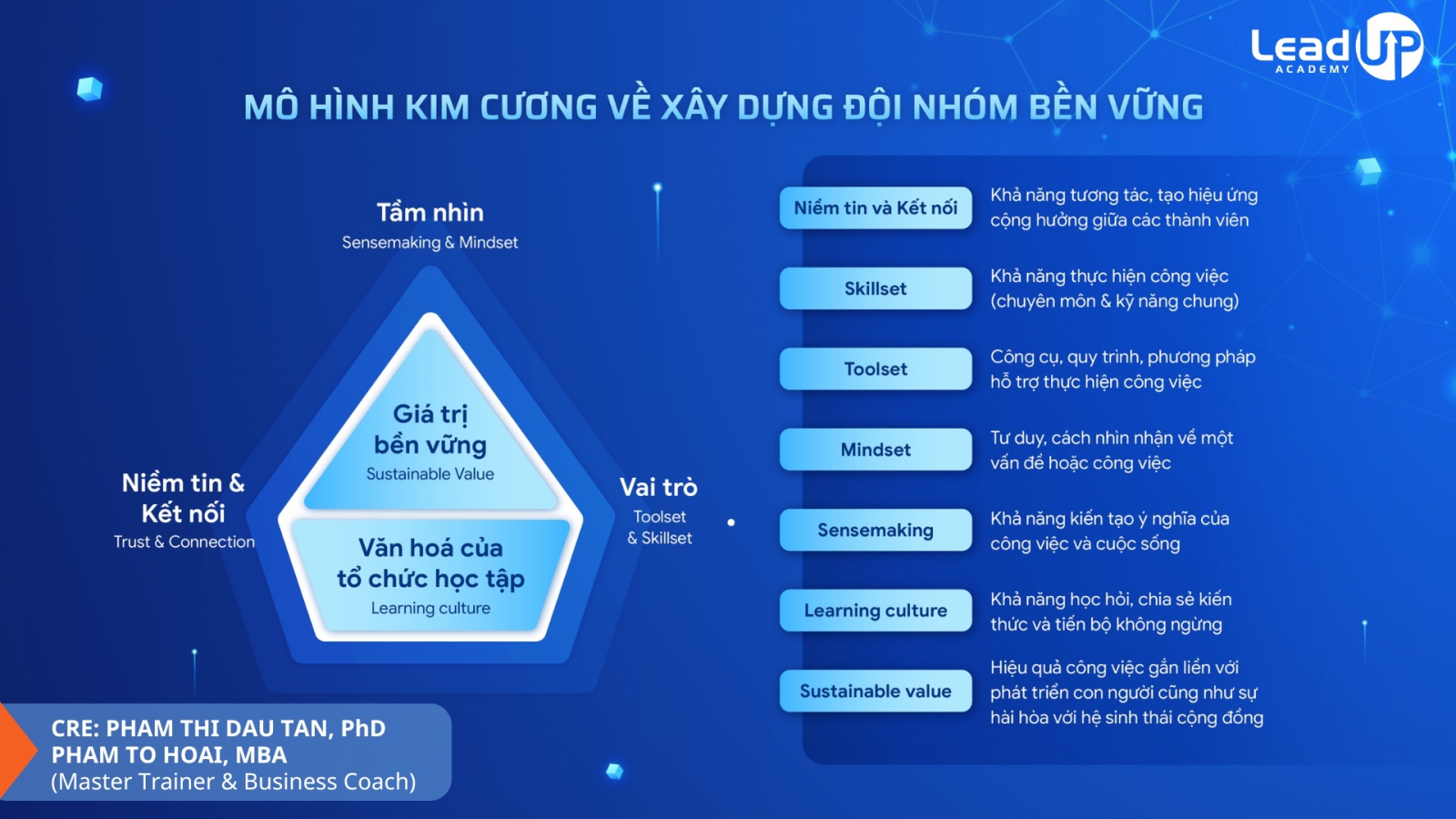 Sự hợp tác giữa TS. Phạm Thị Dậu Tân và Lead-UP Academy mở ra hướng đi mới trong việc ứng dụng các mô hình quản trị hiện đại (Agile, BA, Diamond Model) vào đào tạo thực chiến cho doanh nghiệp Việt.
