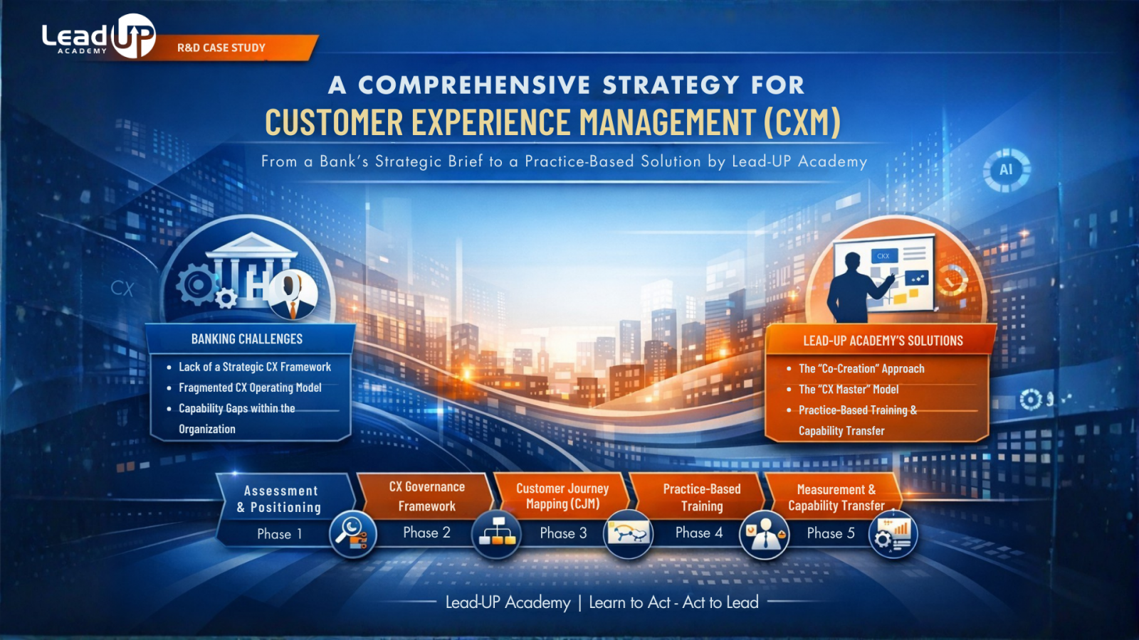 This article reflects Lead-UP Academy’s R&D perspective in receiving the bank’s brief and designing a CXM solution through a strategic consulting approach combined with organizational capability transfer.