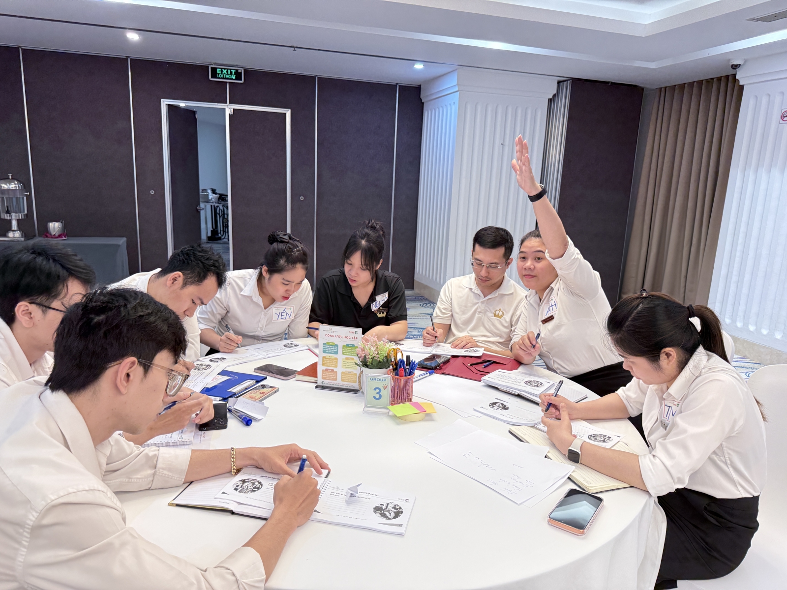 Ngay sau lễ khai giảng, lớp học đầu tiên dành cho Ban lãnh đạo và cán bộ quản lý đã diễn ra trong không khí sôi nổi, với sự tham gia đầy đủ của đội ngũ quản lý chủ chốt. Phần khởi động của chương trình được thiết kế sáng tạo thông qua hoạt động giải mã ô chữ bí mật, với từ khóa “CHẠM” – một khái niệm xuyên suốt nhằm nhấn mạnh vai trò của cảm xúc trong trải nghiệm khách hàng.