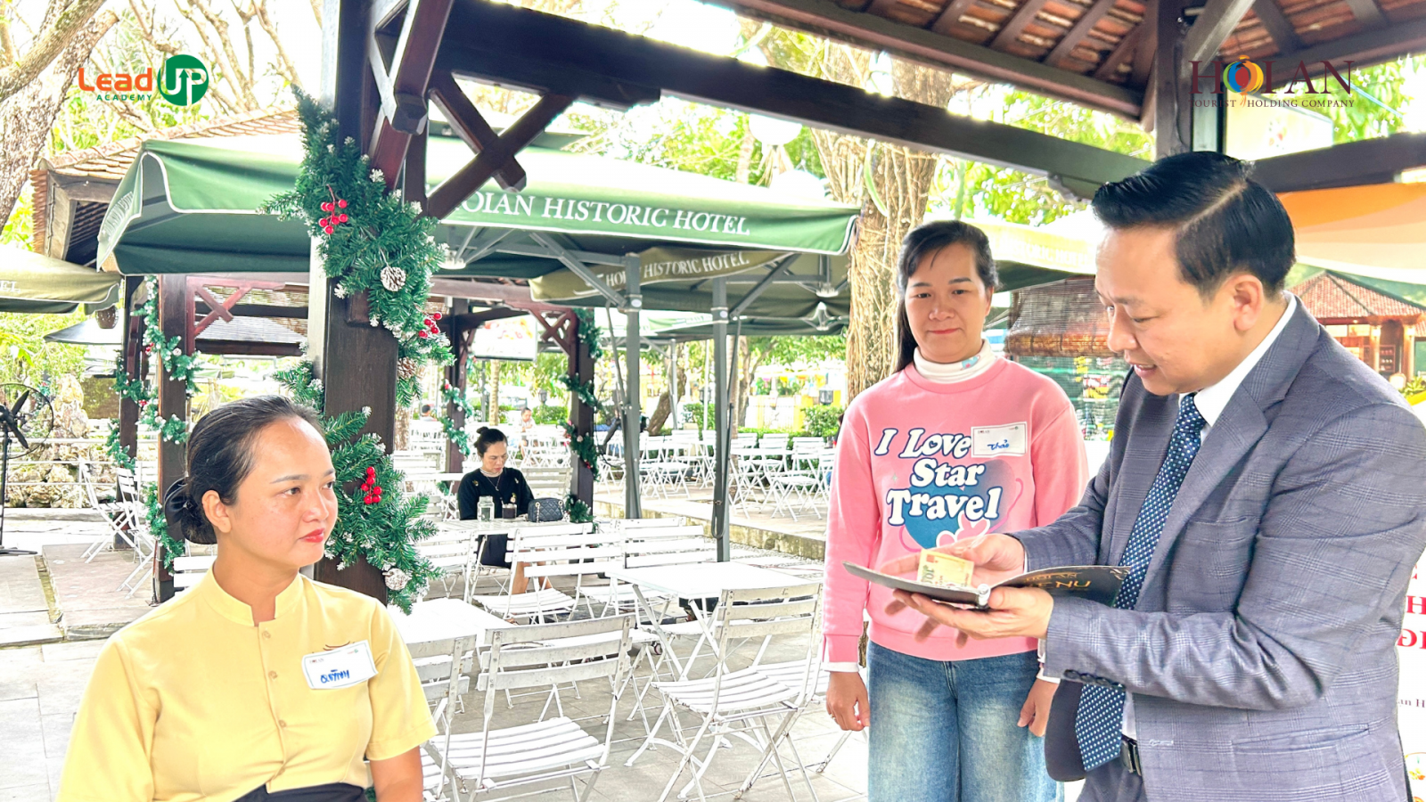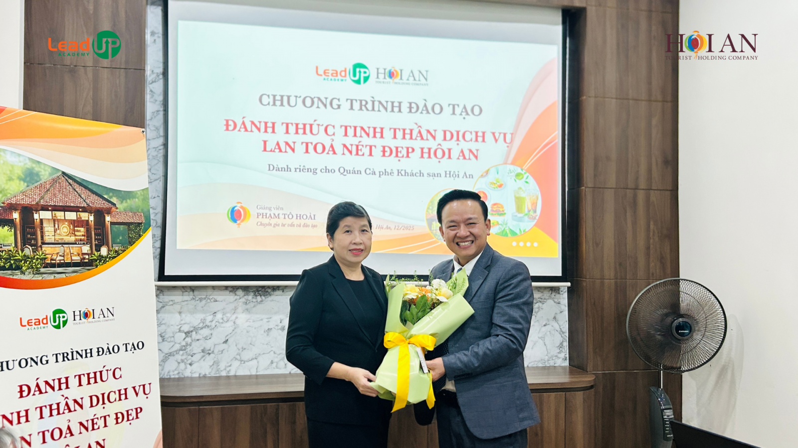 Ngày 20/12/2025, Lead-UP Academy phối hợp cùng Công ty Cổ phần Du lịch – Dịch vụ Hội An đã chính thức khai mạc chương trình đào tạo “Đánh thức tinh thần dịch vụ – Lan tỏa nét đẹp Hội An”, dành cho đội ngũ cán bộ nhân viên Quán Cà phê Khách sạn Hội An, dưới sự chứng kiến của Ban Lãnh đạo và đại diện các đơn vị liên quan. Chương trình được triển khai trong bối cảnh quán cà phê vừa hoàn tất chỉnh trang, khoác lên mình diện mạo mới, đồng thời đặt ra yêu cầu cấp thiết về sự đồng bộ giữa không gian – con người – phong cách phục vụ, nhằm mang đến trải nghiệm trọn vẹn và nhất quán cho du khách khi đến với Hội An.