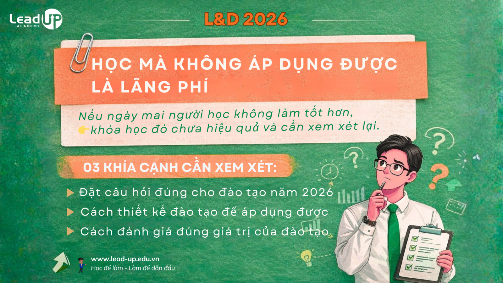 Từ góc độ nghiên cứu và triển khai thực tiễn, một kết luận rõ ràng cho L&D năm 2026 có thể được rút ra: mọi hoạt động học tập không chuyển hóa thành cải thiện hiệu suất đều là sự lãng phí nguồn lực của tổ chức. Nếu sau đào tạo, người học không làm việc tốt hơn ngay trong ngày làm việc tiếp theo, thì can thiệp đào tạo đó chưa hoàn thành đúng mục tiêu và cần được xem xét lại.