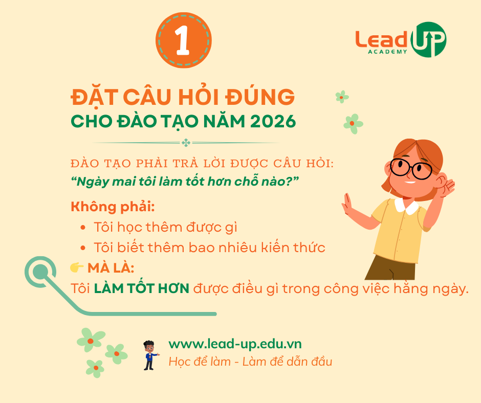Trong bối cảnh năm 2026, doanh nghiệp Việt Nam đang đối mặt đồng thời với: Áp lực tối ưu chi phí và nâng cao năng suất; Biến động nhân sự, đặc biệt ở lực lượng vận hành và quản lý trung gian; Khoảng cách ngày càng lớn giữa chiến lược và khả năng thực thi. Thông qua các hoạt động R&D và triển khai thực tế của Lead-UP Academy tại nhiều doanh nghiệp thuộc các ngành: ngân hàng, viễn thông, dịch vụ, khách sạn, bất động sản và sản xuất, chúng tôi chia sẻ trong bài viết này với một thông điệp rõ ràng, đó là: Đào tạo chỉ tạo ra giá trị khi nó giải quyết đúng “điểm nghẽn” vận hành – không phải khi nó làm dày thêm danh mục khóa học. Bài viết này, chúng tôi tập trung chỉ ra 5 khía cạnh của đào tạo doanh nghiệp, cụ thể như sau: