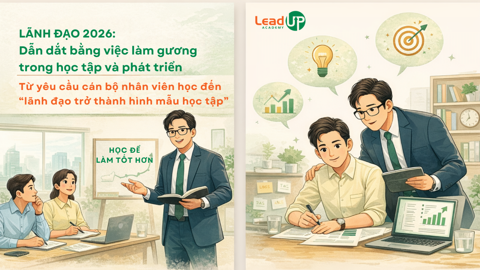Trong L&D 2026, lãnh đạo không chỉ đóng vai trò bảo trợ (sponsor) cho các chương trình đào tạo, mà cần trở thành hình mẫu học tập (role model). Điều này không có nghĩa là lãnh đạo phải học nhiều hơn nhân viên, mà là học đúng cách, học đúng vấn đề và thể hiện rõ tinh thần học tập thông qua hành động cụ thể trong công việc hằng ngày.