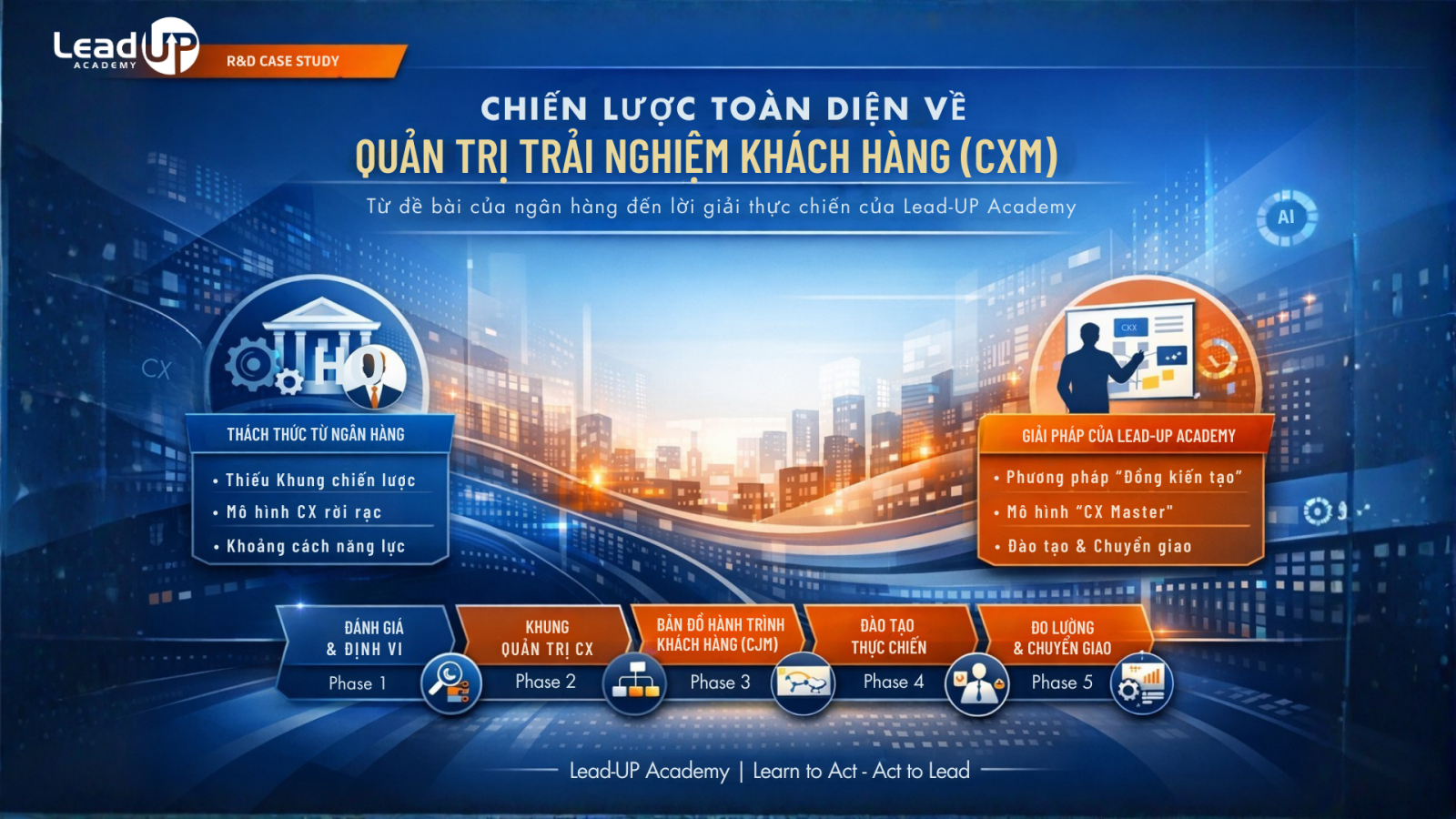 Từ thực tiễn đó, một ngân hàng thương mại lớn tại Việt Nam đã đặt ra bài toán hóc búa cho Lead-UP Academy: Làm thế nào để xây dựng một hệ thống quản trị CX bài bản, có khả năng vận hành thực tế, đo lường được và có thể nhân rộng trên toàn hệ thống?
