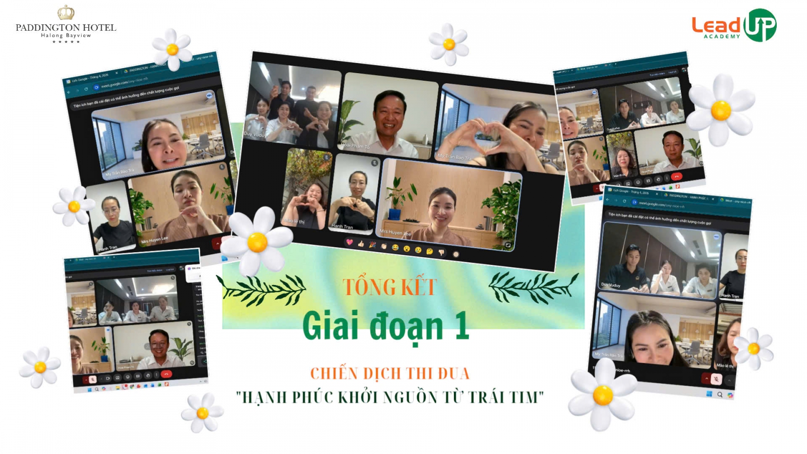 Sau một tuần triển khai Giai đoạn 1 của dự án “Chuẩn hóa tư duy, hành vi dịch vụ – Kiến tạo trải nghiệm khách hàng xuất sắc”, Lead-UP Academy đã phối hợp cùng Ban lãnh đạo Khách sạn Paddington Hotel Halong Bayview tổ chức buổi họp tổng kết trực tuyến nhằm nhìn lại những gì đã làm được trong giai đoạn 1 và thống nhất hướng đi cho giai đoạn tiếp theo.
