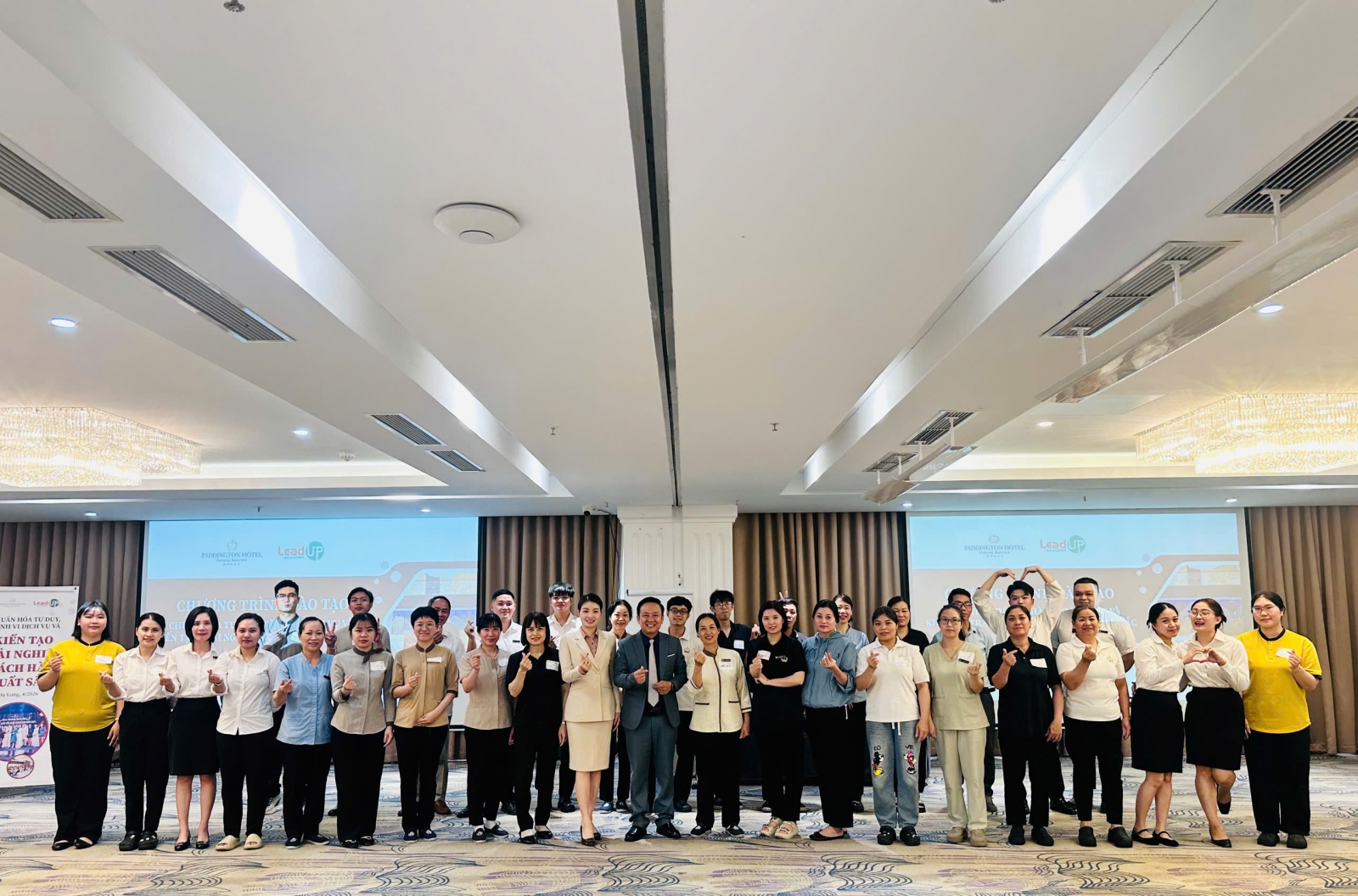 Từ trải nghiệm nhân viên đến nền tảng của trải nghiệm khách hàng xuất sắc Hạ Long, tháng 04/2026 – Khép lại hai lớp đào tạo dành cho Ban lãnh đạo, cán bộ quản lý và đội ngũ tuyến đầu, Lead-UP Academy tiếp tục phối hợp với Khách sạn Paddington Halong Bayview để triển khai Lớp 3 trong Chuỗi chương trình “Chuẩn hóa tư duy, hành vi dịch vụ và kiến tạo trải nghiệm khách hàng xuất sắc”, với đối tượng là cán bộ nhân viên khối hỗ trợ và văn phòng. Lớp học tiếp tục được dẫn dắt bởi Chuyên gia Phạm Tô Hoài – Sáng lập và Chuyên gia Lê Thị Ngọc Huyền – CEO của Học viện Quản trị Thực chiến Lead-UP.
